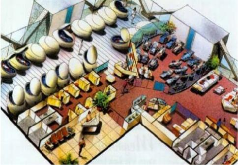 In order to meet the business market for assembly centers "Mind Gym" within the company's own physical space thus providing its workforce in discretionary time improving the working environment, reducing stress levels and increasing productivity were devised in collaboration with the team of Luc Schuiten architects, Belgium, three types of centers "Mind Gym".