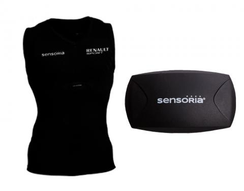 Esta edição especial T-shirt inteligente Renault Sport oferece um design confortável, à base de compressão. A característica da camisa são os eletrodos que fornecem dados da frequência cardíaca consistentes e precisas. Combinado com o monitor de frequência cardíaca Sensoria, esta camisa é o companheiro perfeito para o R. S. Monitorar app. Agora, não só você pode gravar e compartilhar o desempenho do veículo, mas também monitorar dados da frequência cardíaca do condutor. A T-shirt também pode se conectar com outros HRMs populares (tais como Polar H7 ou Garmin Premium) com conexões de encaixe padrão.